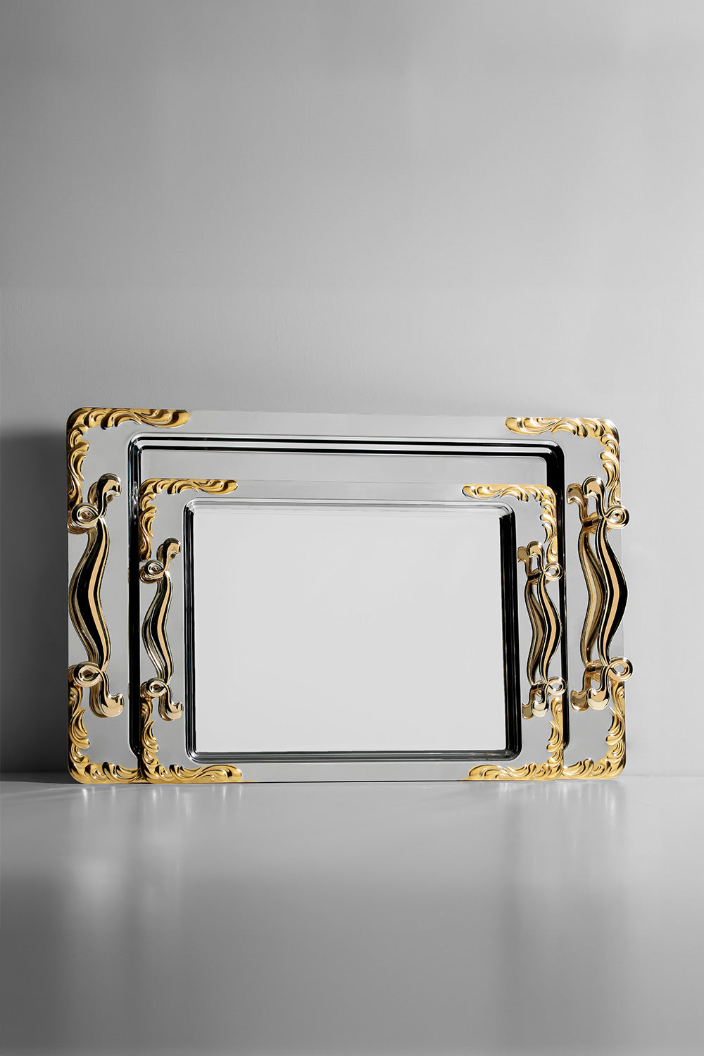 Lalezar 2-Piece Gold Plain Stainless Steel Tray Set