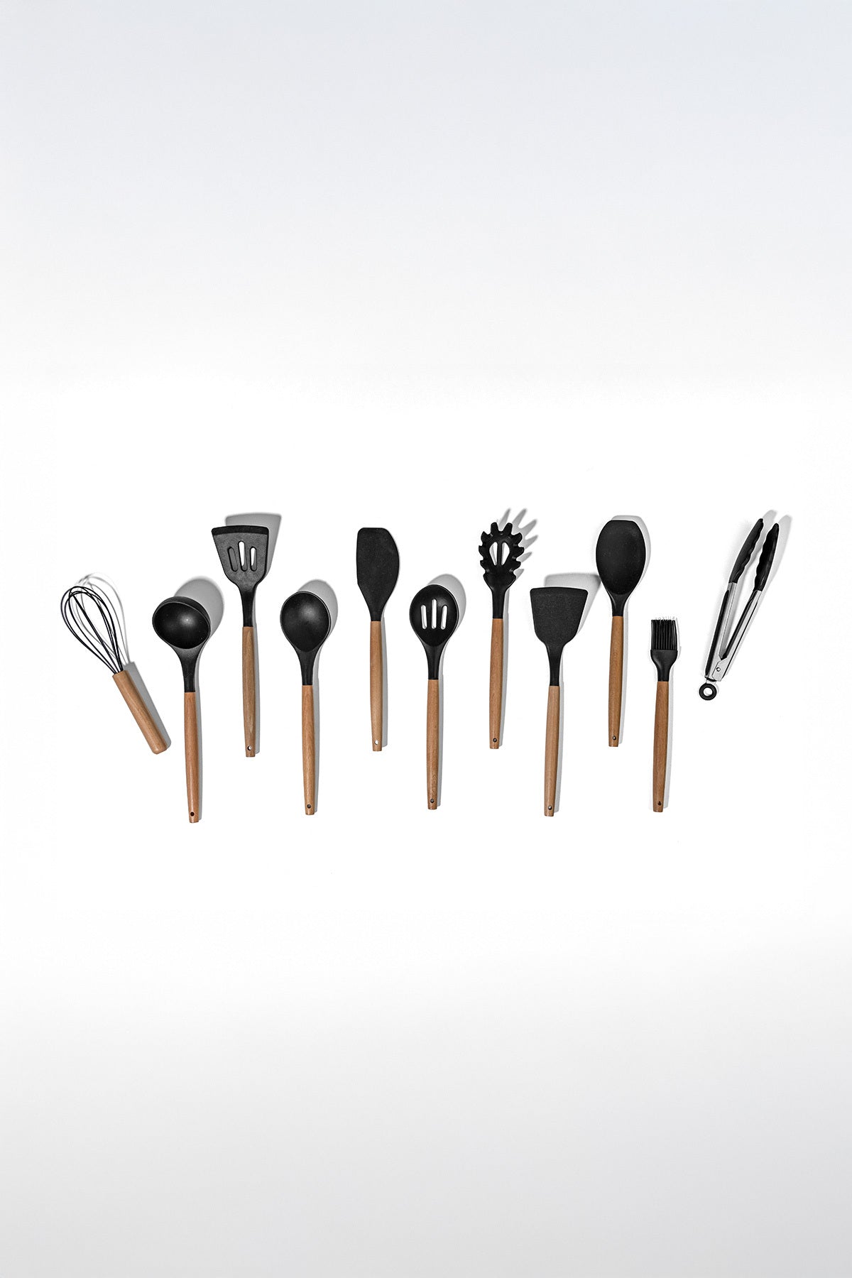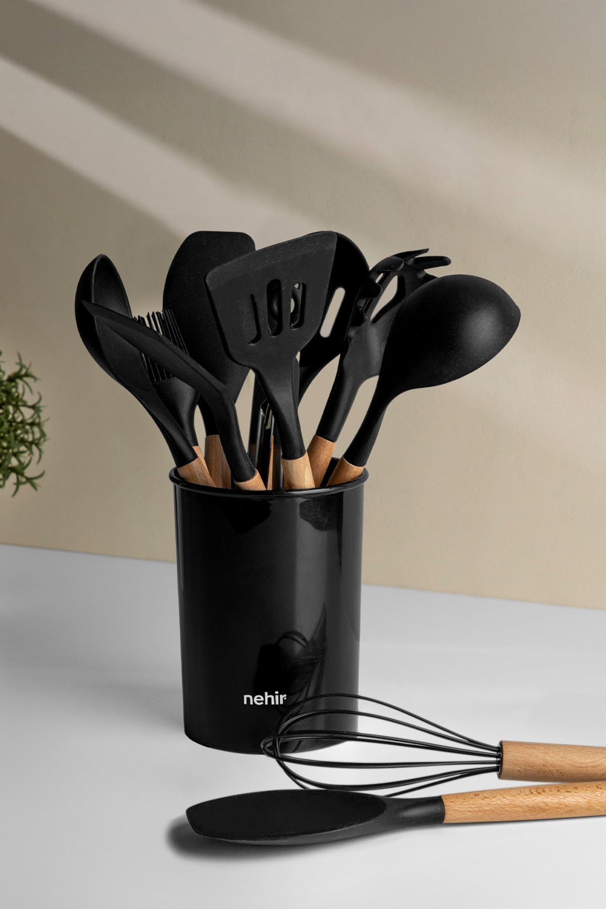 Angela Siyah Ahşap Silikon 12 Parça Servis Takımı