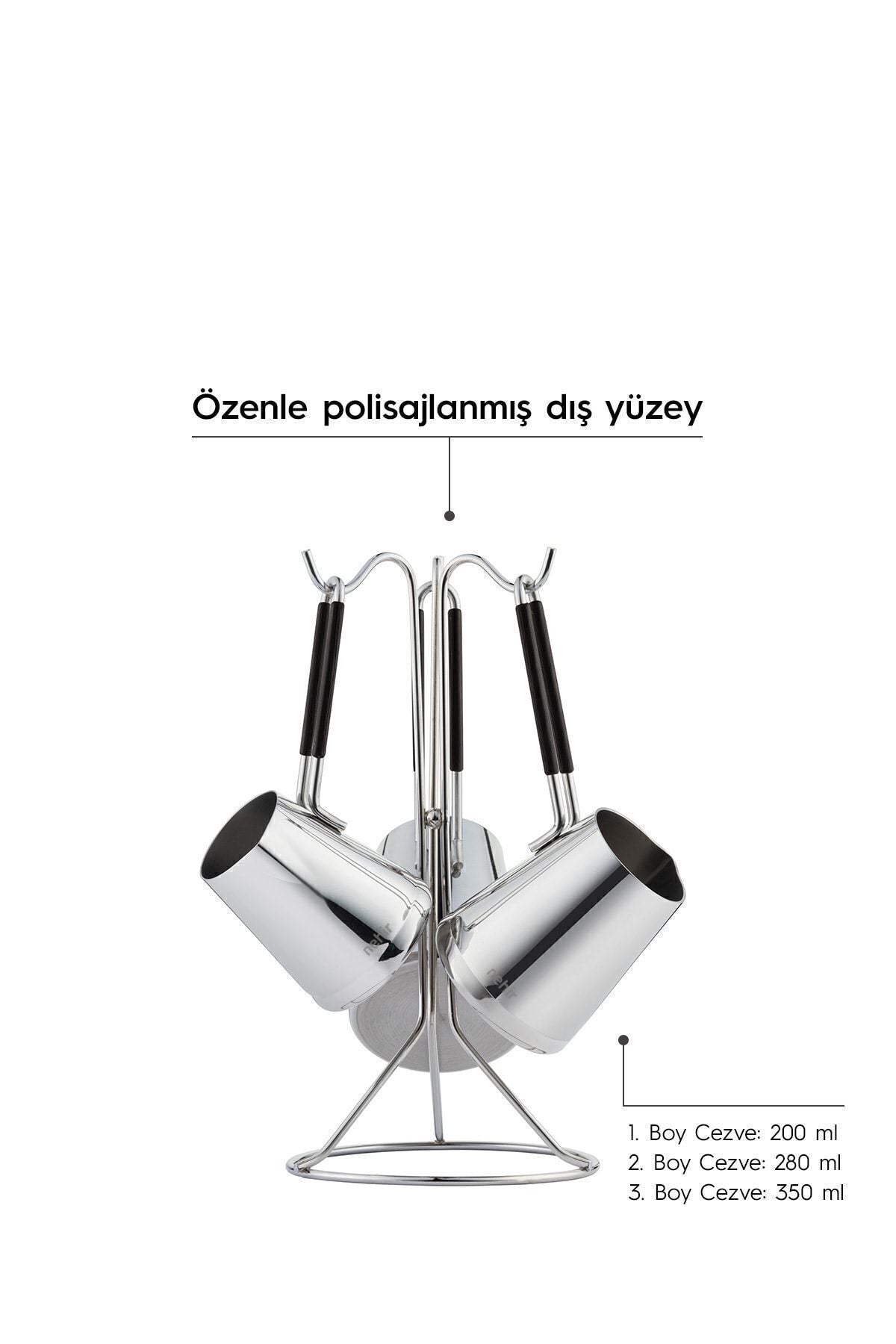 Everest 4 Parça Standlı Paslanmaz Çelik Cezve Seti