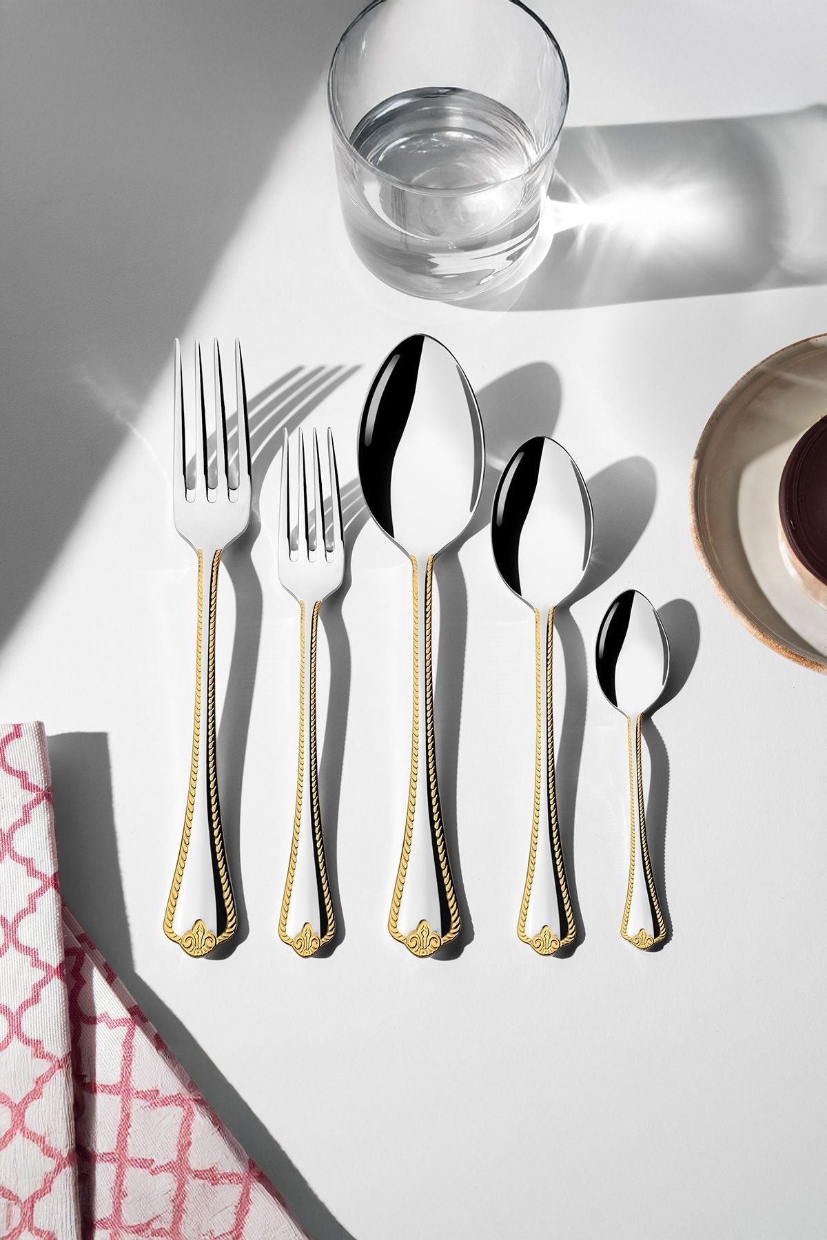 Fulya Altın Sade 12 Kişilik 60 Parça Kutulu Çatal Kaşık Takımı