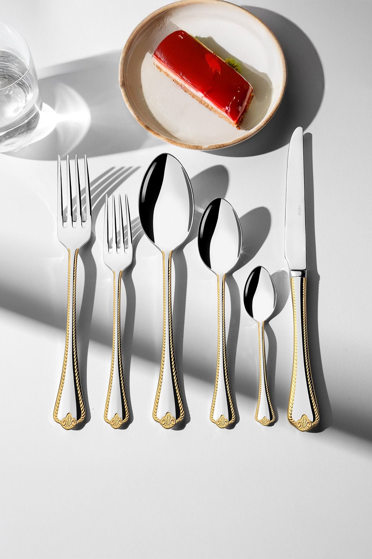 Fulya Altın Sade 12 Kişilik 72 Parça Kutulu Çatal Kaşık Bıçak Takımı