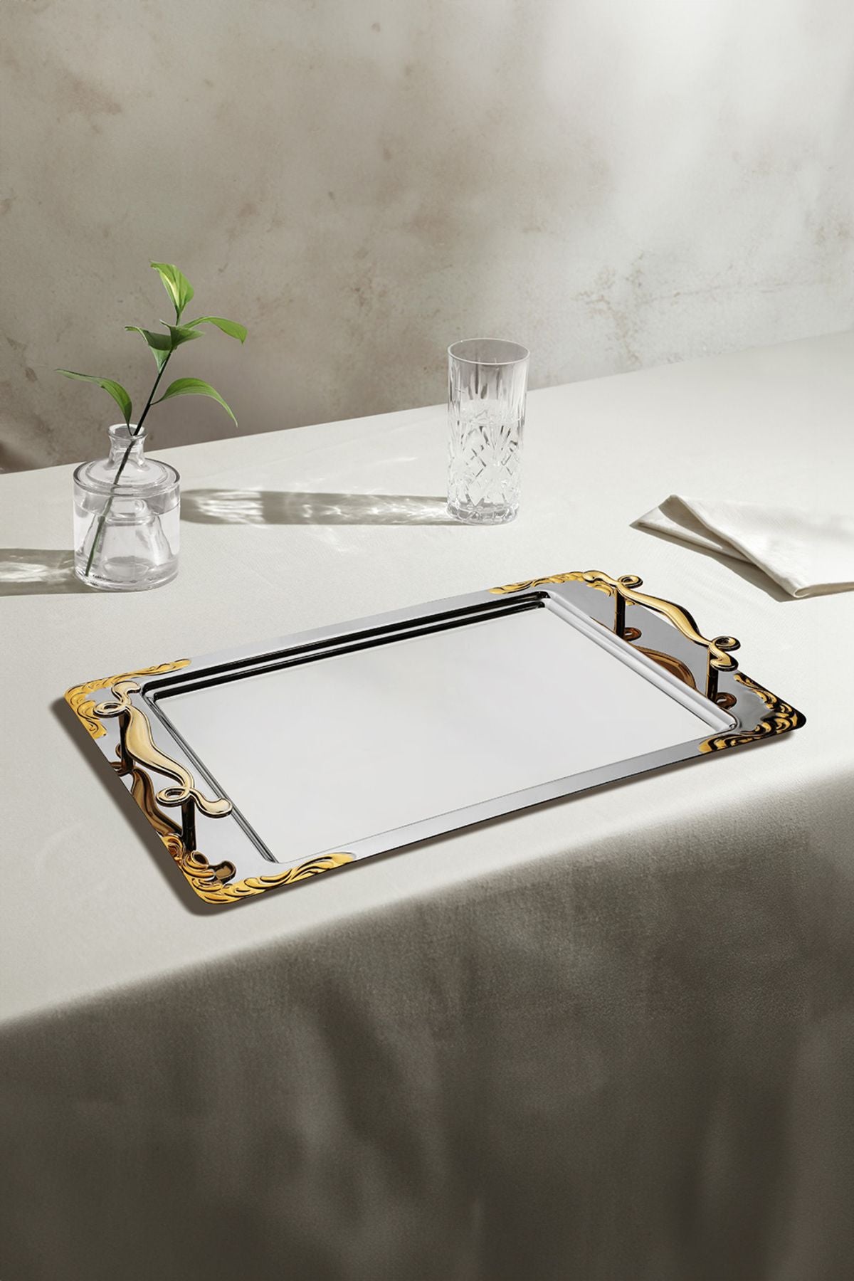 Lalezar Altın Sade Çelik Çay Tepsi