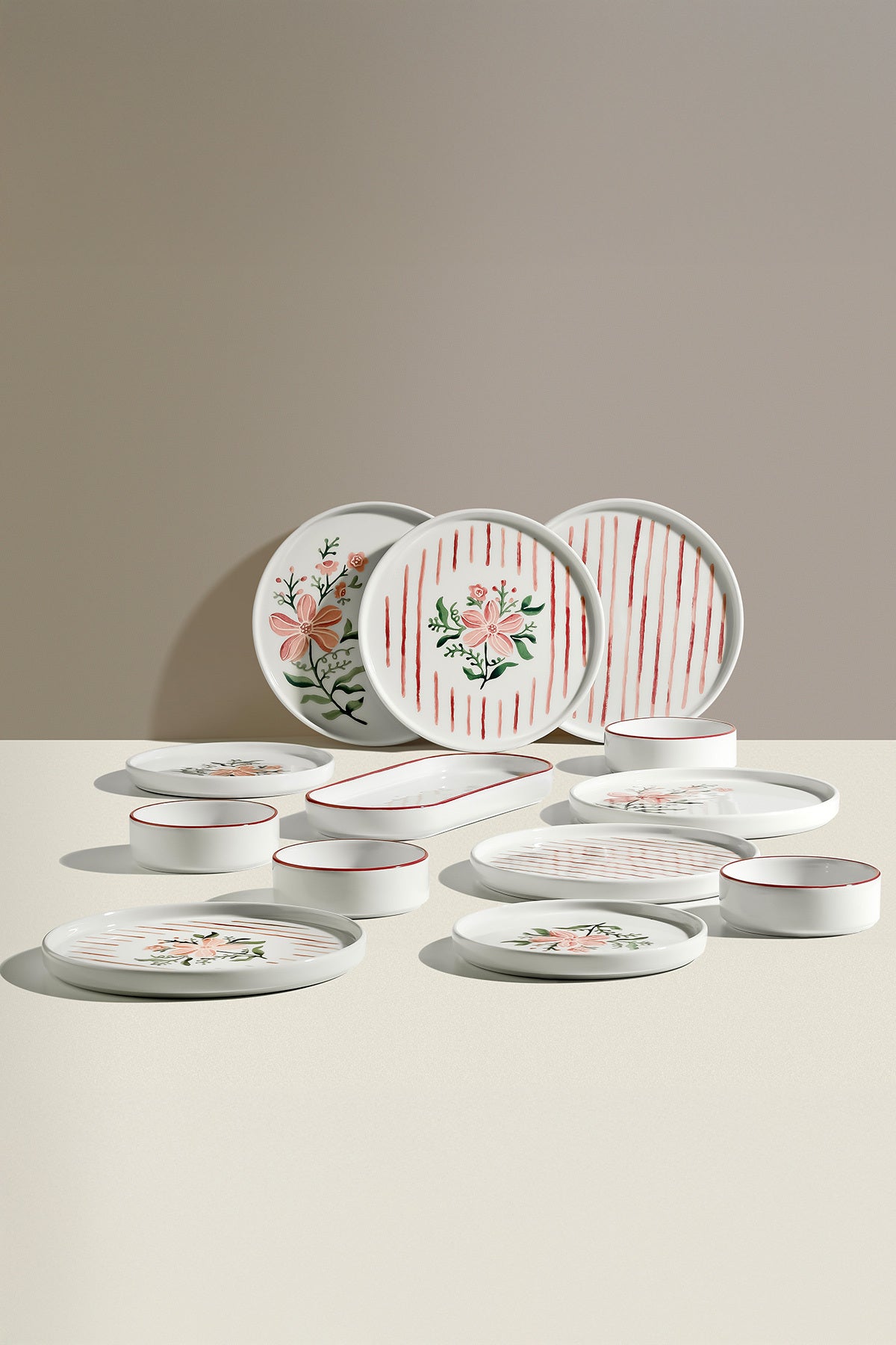 Line Flowers 6 Kişilik 13 Parça Seramik Kahvaltı Takımı
