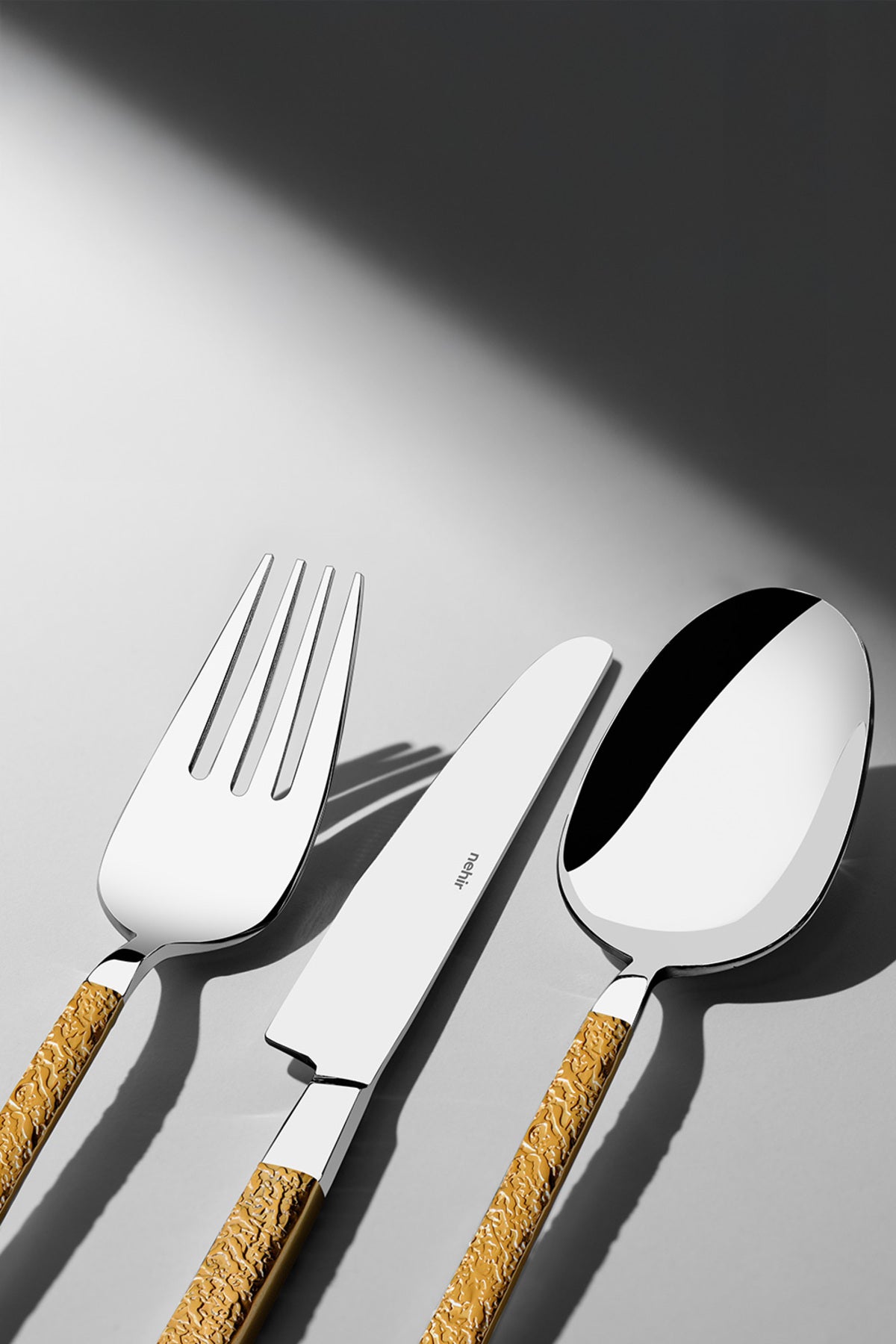 Lyon Altın Saten 6 Kişilik 36 Parça Kutulu Çatal Kaşık Bıçak Takımı