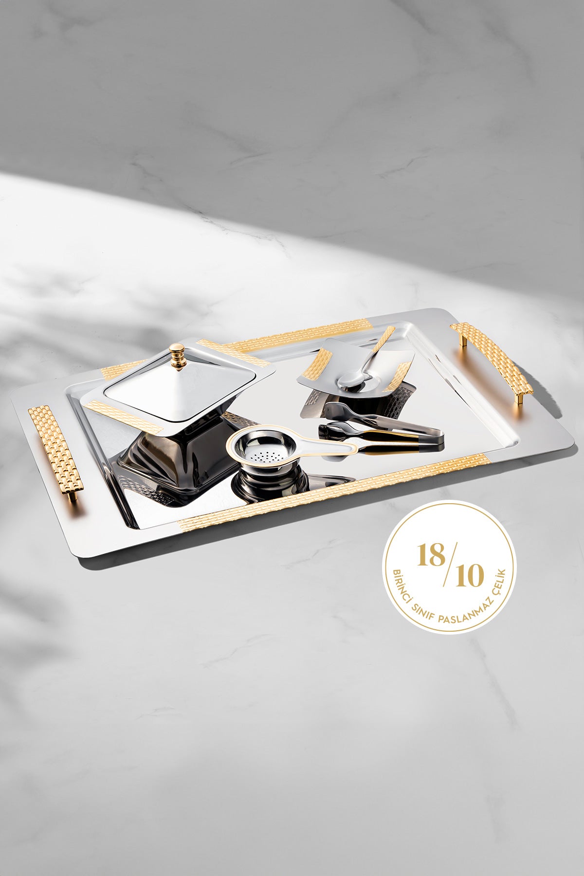 Sırma Altın Saten 12 Kişilik 28 Parça Çelik Çay Seti