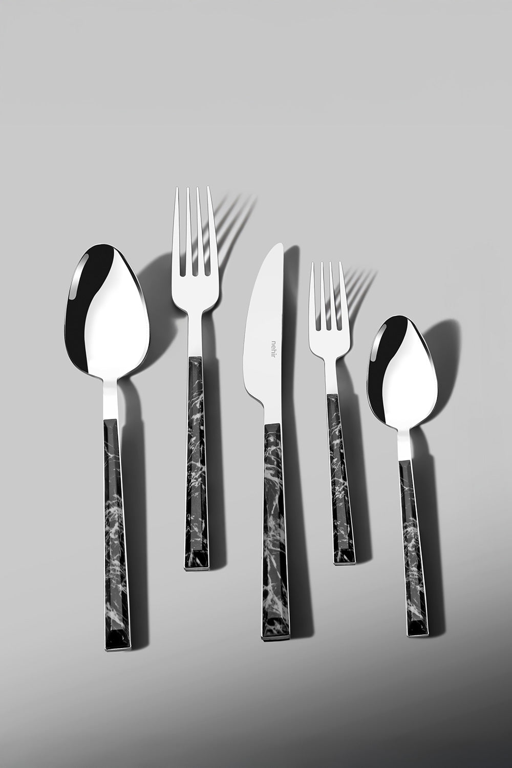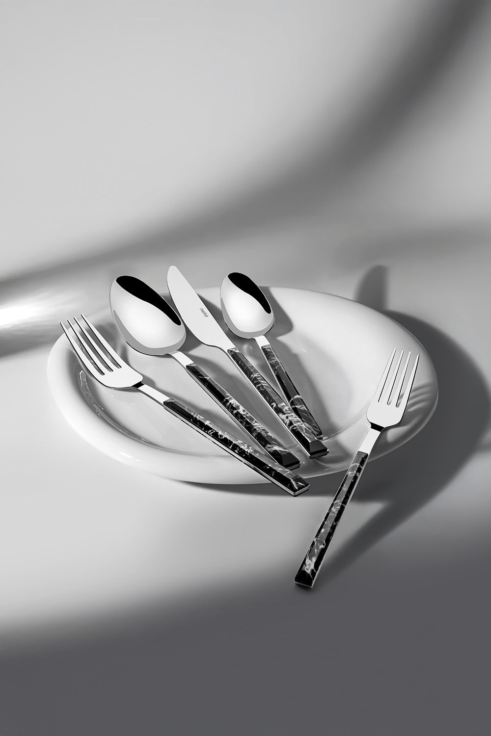 Tulip Siyah 6 Kişilik Mermer Desenli 30 Parça Kutulu Çatal Kaşık Bıçak Takımı