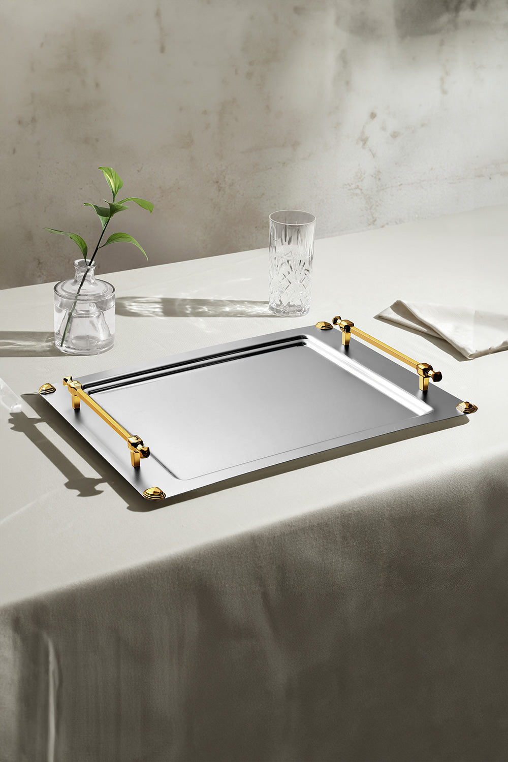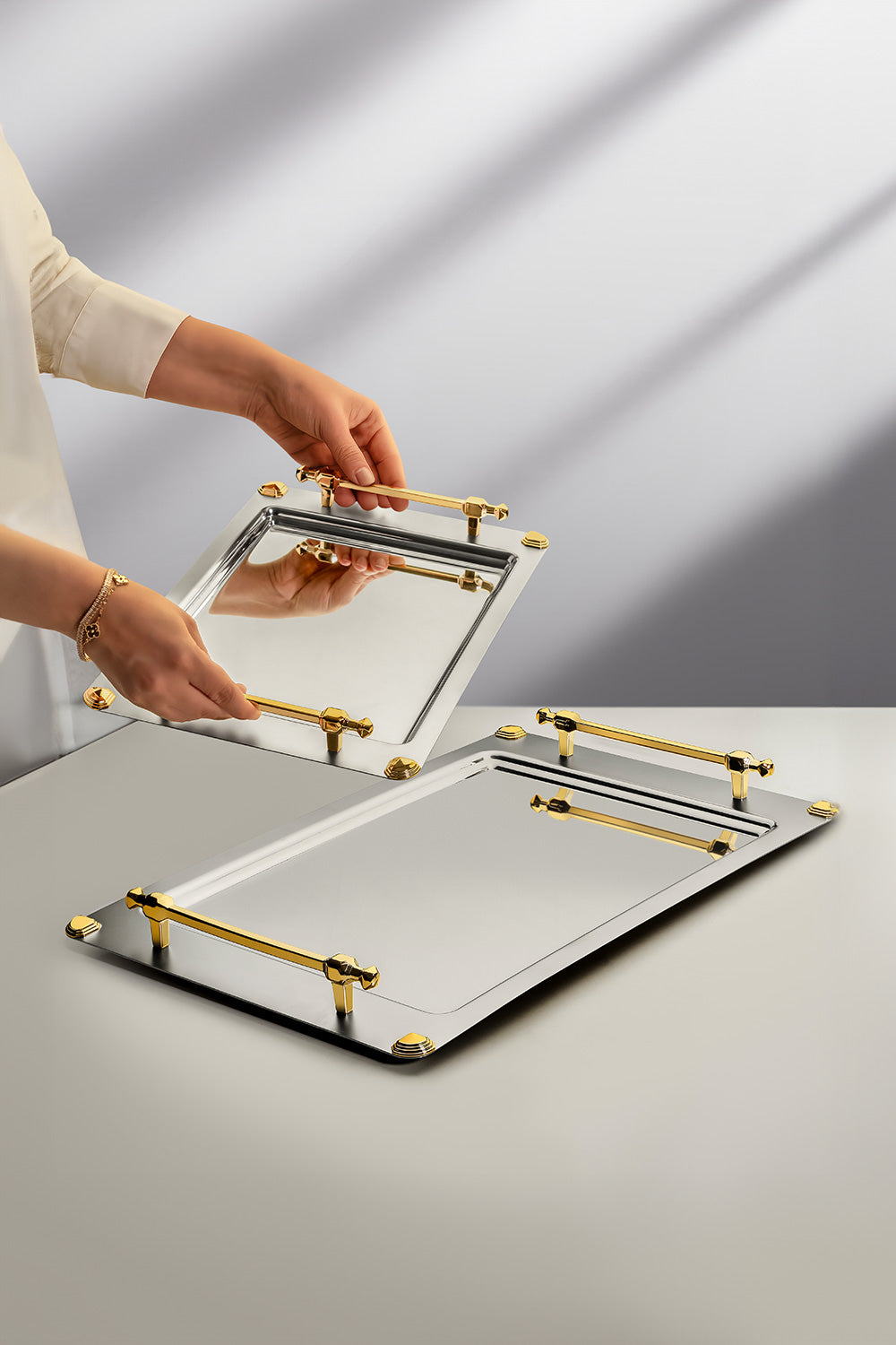 Verona 2'li Altın Saten Çelik Tepsi Seti