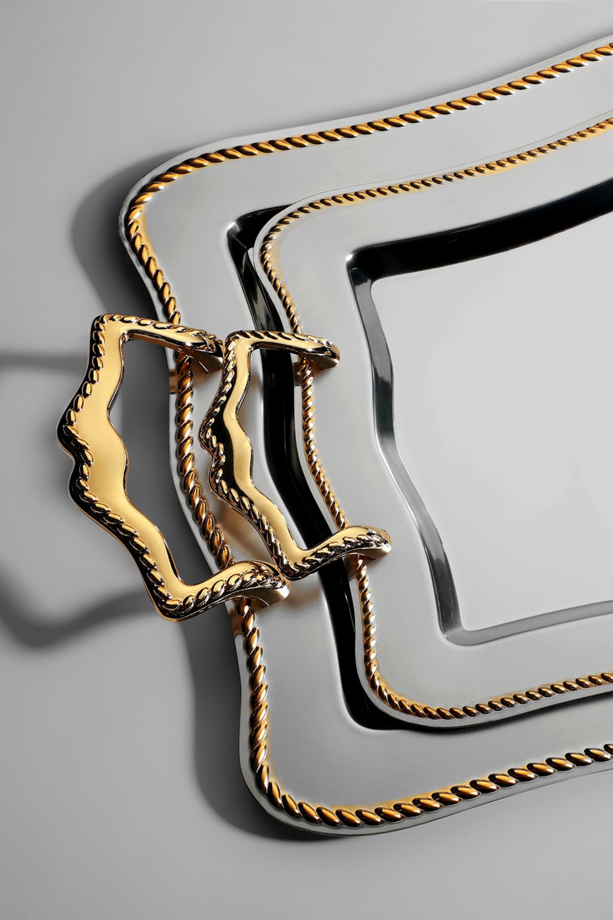 Zincir 2'li Altın Saten Çelik Tepsi Seti